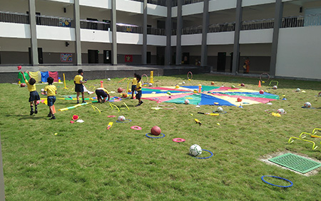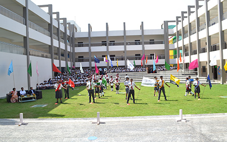 The open-air with a seating capacity of over 1000 is the place where daily assembly and all major functions like Annual Day, Investiture Function, Assembly etc. are conducted. The grass flooring gives a natural feel to the entire building.