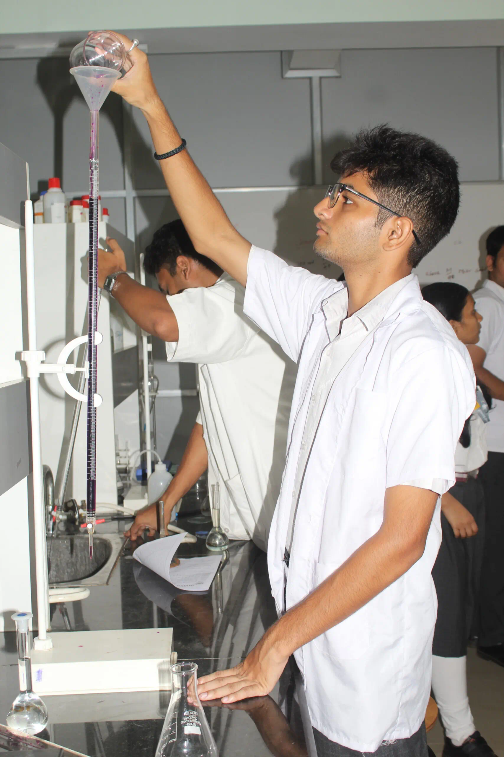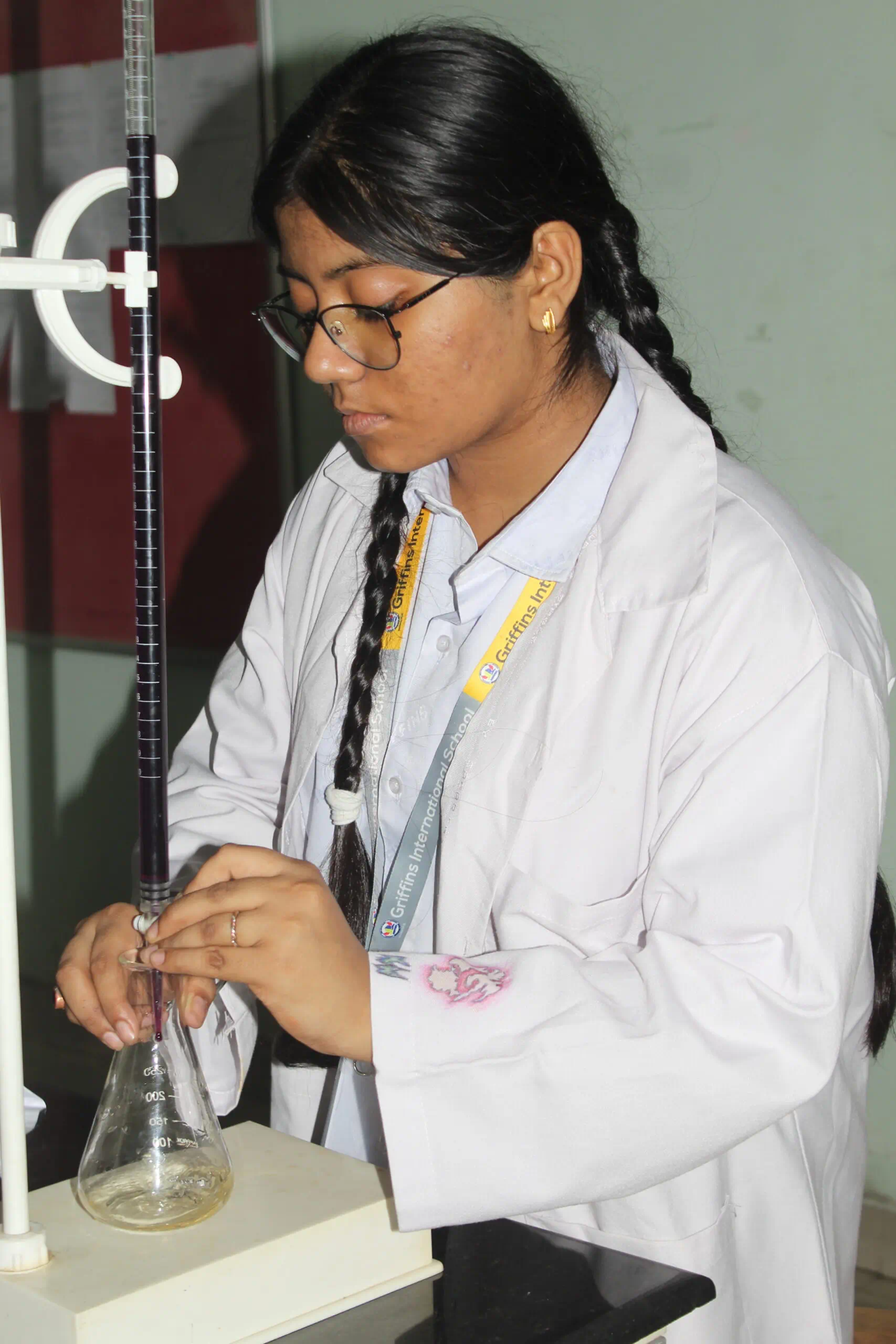 Griffins International School has a well-planned Chemistry lab that equips the students to have hands-on experience. The lab is spacious and ensures that every student gets an opportunity to perform the experiments. It is adequately equipped with every kind of modern apparatus required for the Practical Examinations as prescribed by the CBSE. It is equipped with a well-ventilated and spacious workspace for conducting effective practical experiments in chemistry.