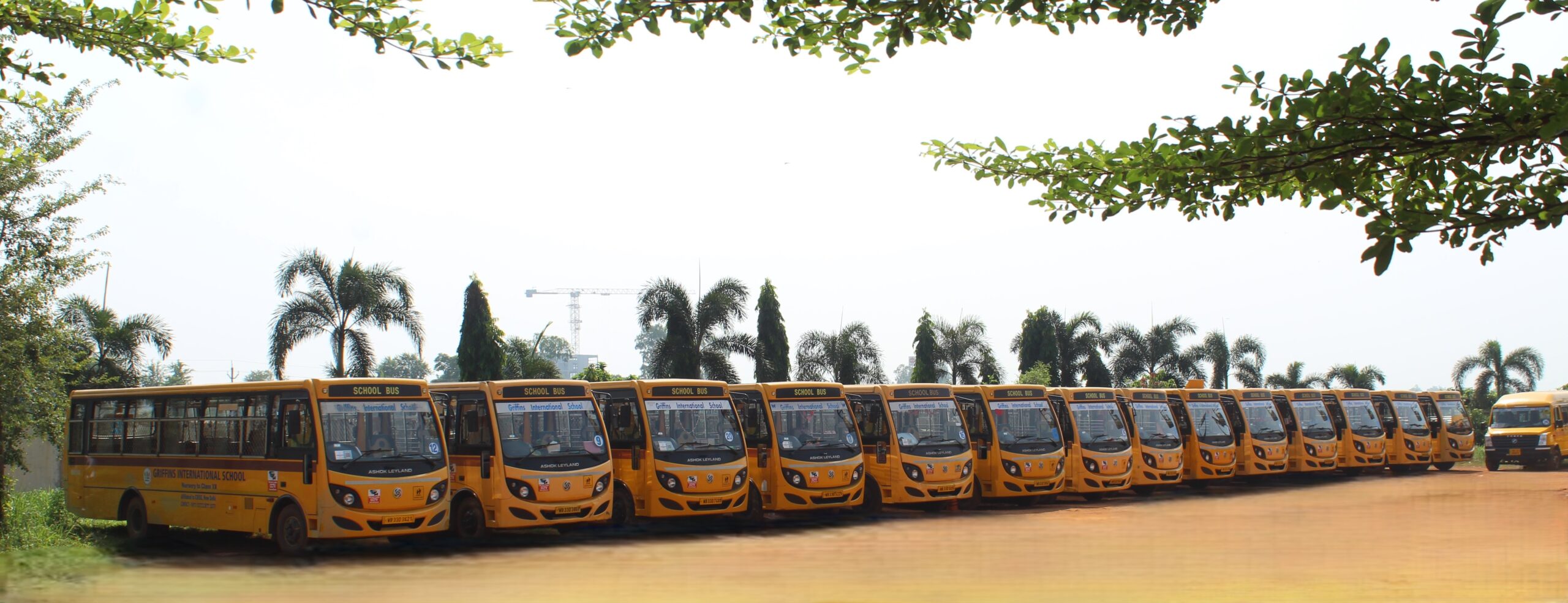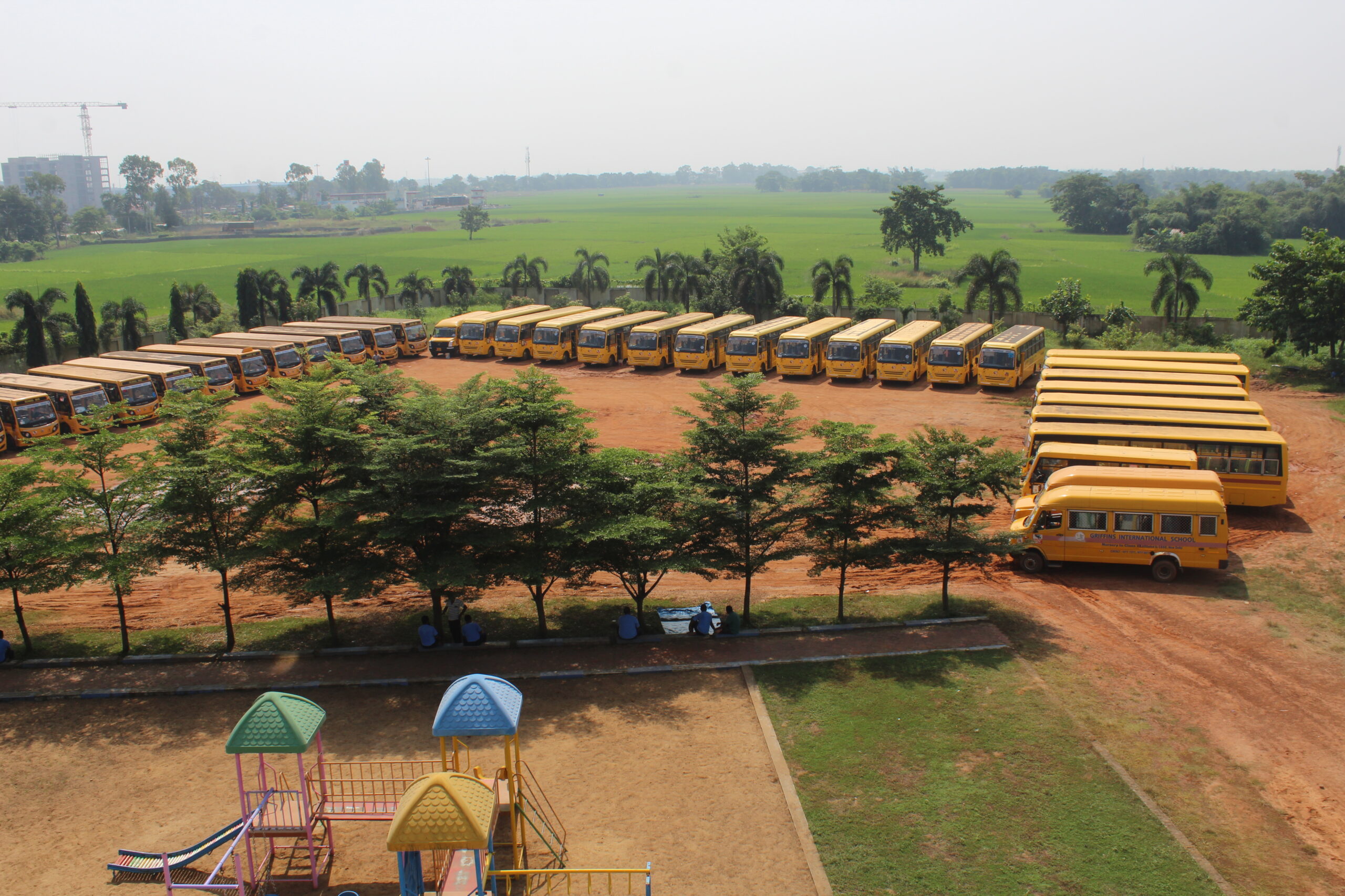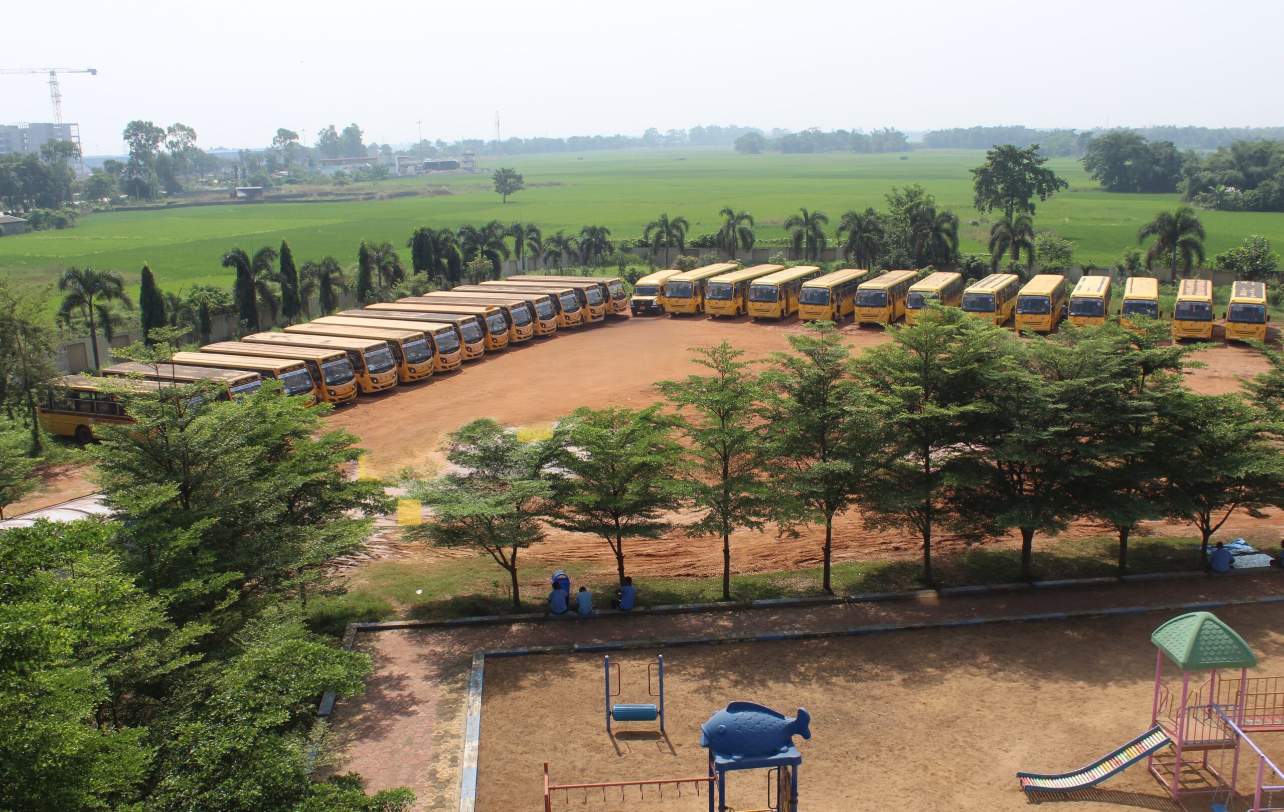 Each bus has a dedicated bus conductor and a maid along with a teacher staff to take care of the children while on board. Parents are send alert messages when students reach and depart from the school.